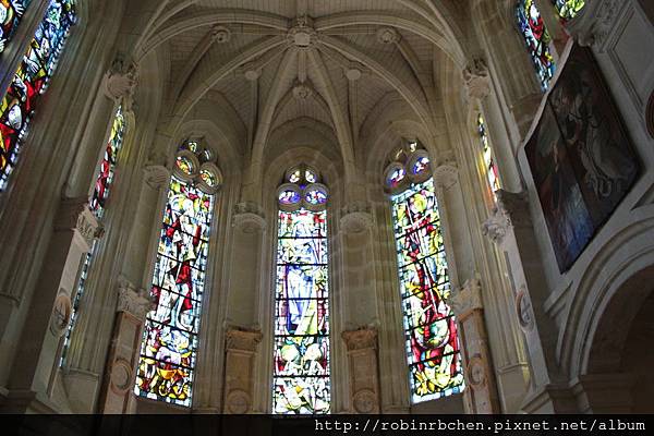 進入城堡之後,首先看到的是城堡內的教堂,可以看到高聳的哥德式拱肋與巨大的彩繪玻璃窗。