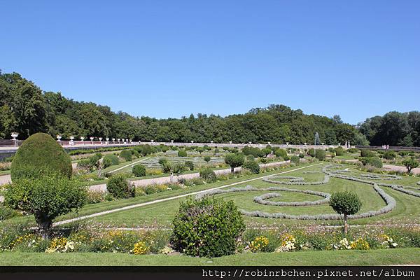 在雪儂梭堡的前方右側,則是當年黛安娜獲贈雪儂梭堡之後,精心打造的法式庭園。