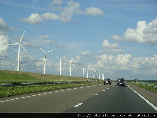 荷蘭風力發電的應用非常普及,沿路都可以看到巨大的風力發電機。