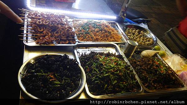 在傳統市場還有看到柬埔寨人最愛得這一味:有小蛇、蜘蛛、蟑螂、蚱蜢、鴨仔蛋......,唯一比較可接受的就是那盤蝦 ><"