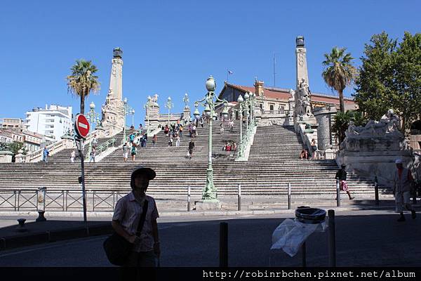 走出馬賽的聖查理火車站,迎接我們的是這一大排的階梯