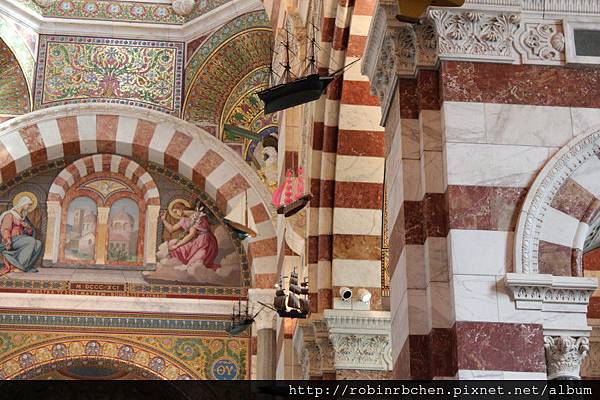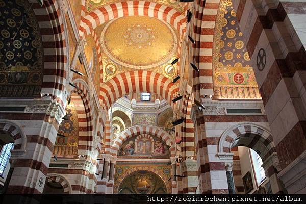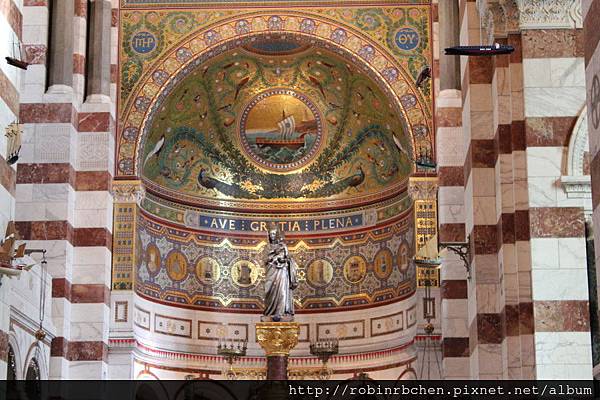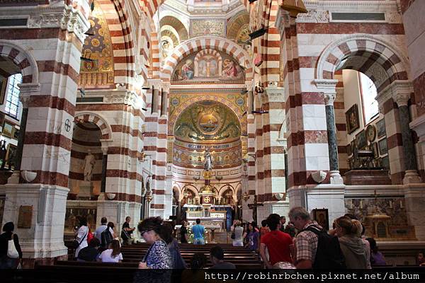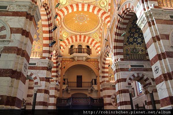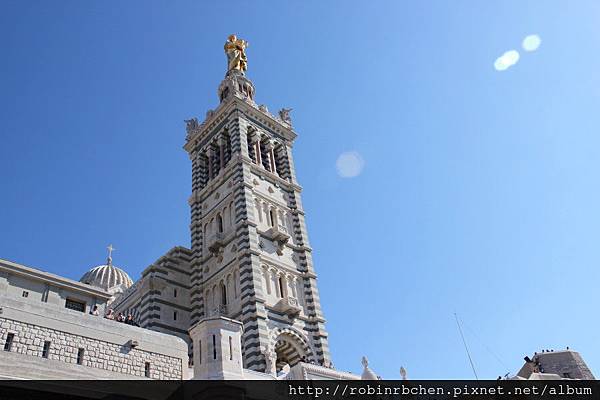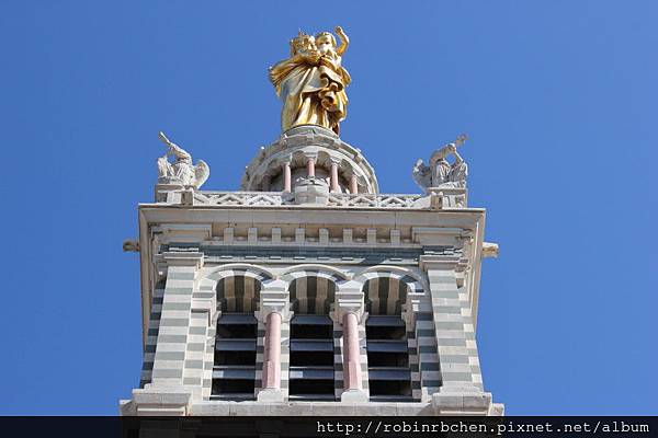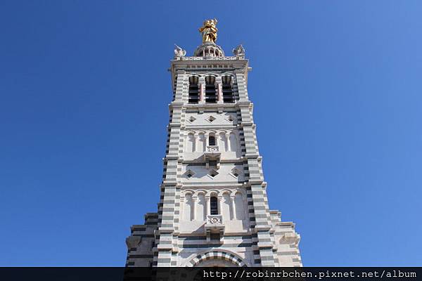 聖母院位於馬賽的一個山丘上,是一棟拜占庭風格的建築,建築風格與法國境內建於同時期的哥德式教堂迥異。聖母院建於 1148 年,有一座高 46 公尺的鐘樓,鐘樓上方矗立著金色的聖母像,是馬賽最明顯的地標!