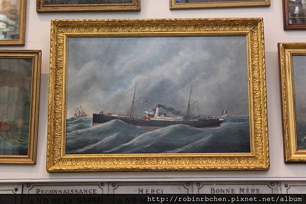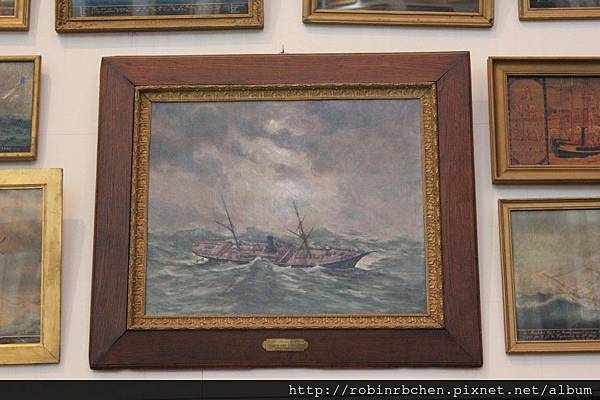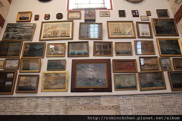 牆邊吊掛的這些模型船,是為了祈求航海人的平安。