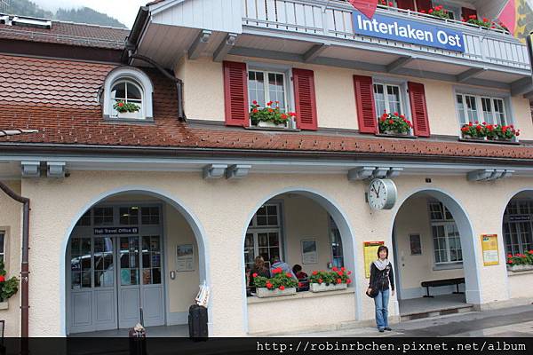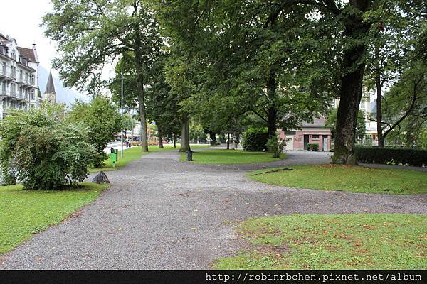 因特拉肯有兩個車站,我們下車的地點是東站,東站附近的建築密度不高,出車站就可看到大片的公園綠地。而鄰近舊市區的西站比較熱鬧,不過以四、五十分鐘的轉車時間而言,並不足以讓我們逛到舊市區,只能在東站附近散散步。