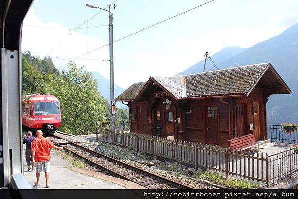 從蒙投前往夏慕尼,需要搭乘一小段瑞士國鐵到 Martigny,再轉搭登山電車,然後跨越法瑞邊境到法國的夏慕尼。
