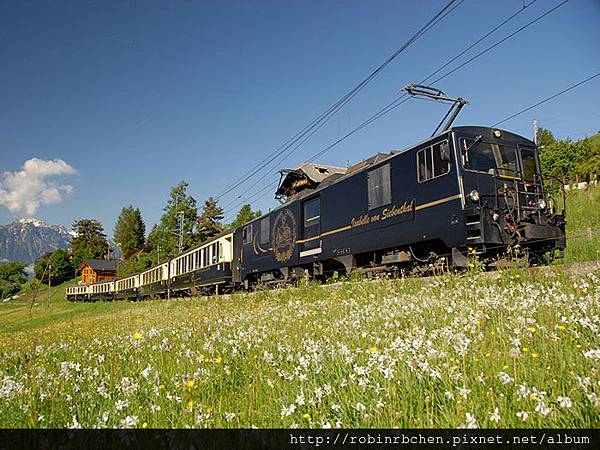 琉森到因特拉肯這段的 Luzern - Interlaken Express 列車 (取自黃金列車官網)
