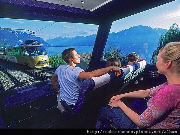 這是車廂內部,大片的車窗設計,讓瑞士阿爾卑斯的壯闊景致,得以一覽無遺~~