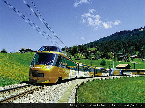 瑞士的黃金列車 (Golden Pass Line) 穿越伯恩高地,東起中部古城琉森 (Luzern),西到列馬湖 (Leman) 畔的蒙投 (Montreux),全長 240 公里,沿途經過無數的森林與湖泊,風光明媚,有「夢幻鐵路」的稱號。