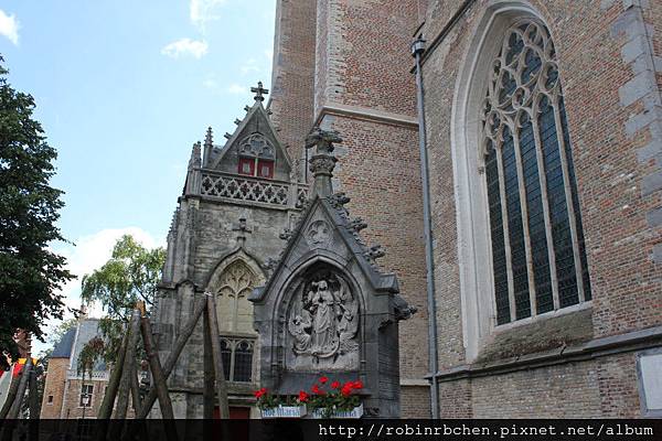 再走到位於運河邊的聖母大教堂 (Onze Lieve Vrouwekerk),教堂高聳的鐘樓,是布魯日最顯著的地標。