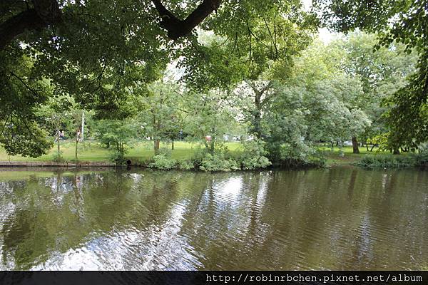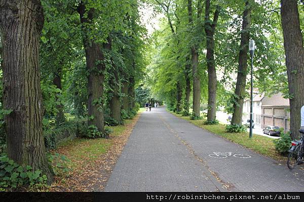 寬廣的愛之湖公園 (Het Minnewater),巨大的樹木很多,但遊客不多,若在此租輛腳踏車騎應該很舒服