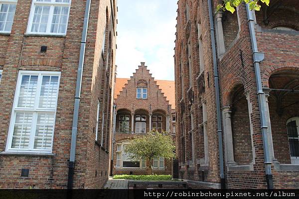 本打算順道看一下「比京會修道院 (Begijinhof)」,但遍尋不著之際,巧遇另一個不知名的修道院。與比京會同樣的紅瓦白牆、同樣的靜謐院落,院中遍植花草,令人感到寧靜安詳~~