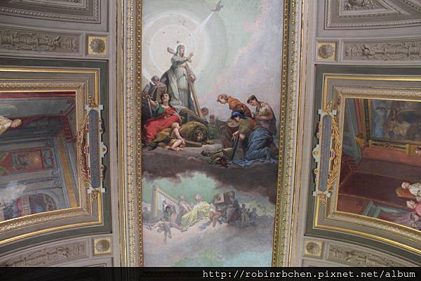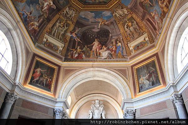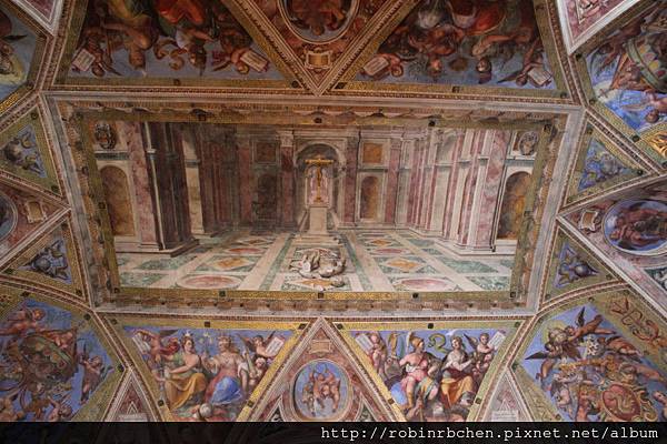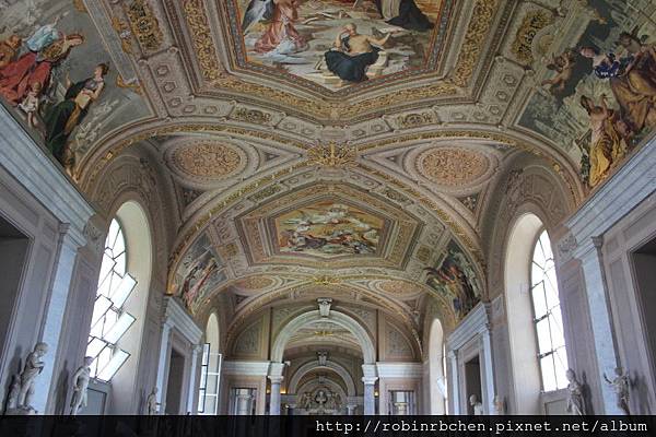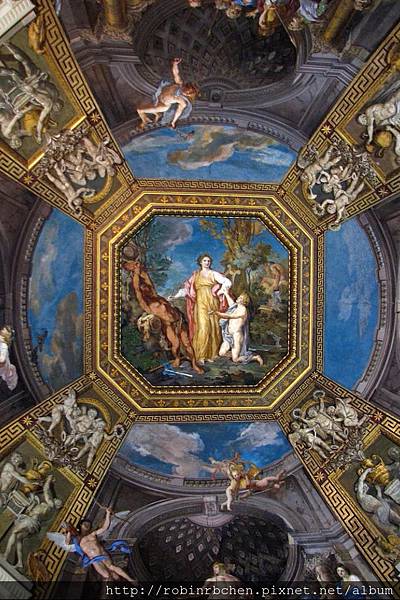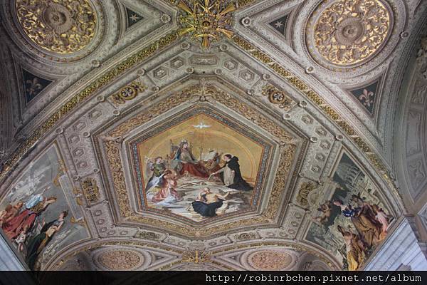總結這「直奔」拉斐爾畫室的過程,路程當中三道長廊的天花板,真是一道比一道精彩,也讓我們的「直奔」變成了「龜速」 XD