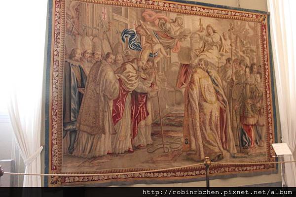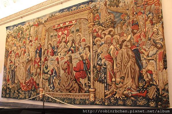 掛毯長廊共有 19 幅繡著耶穌生平事蹟的華麗壁毯,這些壁毯已有 500 年左右的歷史,在那個沒有機器的年代,都是一針一線用手工編織而成。