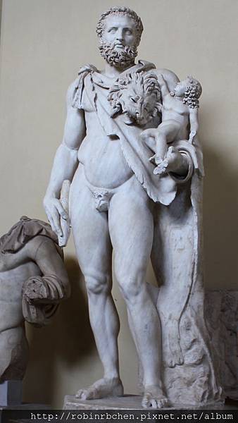 〈海力克斯與其嬰兒 Heracles with infant Telephos〉 是西元二世紀的作品,這也是最早進入梵諦岡博物館的收藏品之一,海力克斯是拉丁神話當中象徵勝利的神,而其子 Telephos 長大後則成為米西亞國王。