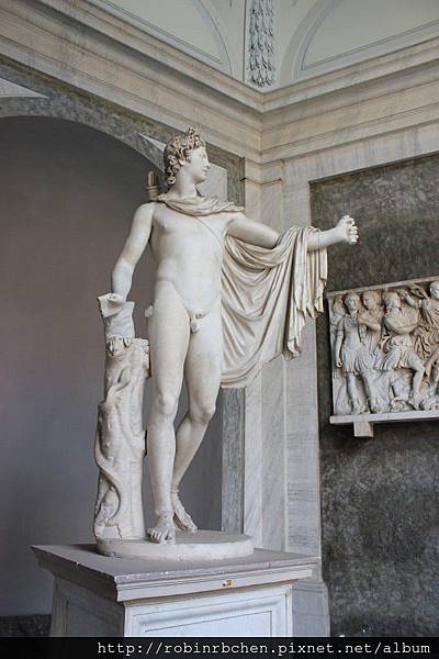 〈美景宮的阿波羅〉是西元二世紀的雕刻,雕像中的阿波羅正看著手上射出去的箭。不過雕像被發現時,雙手都已不知去向,目前所看到的雙手,是在 16 世紀加上去的。