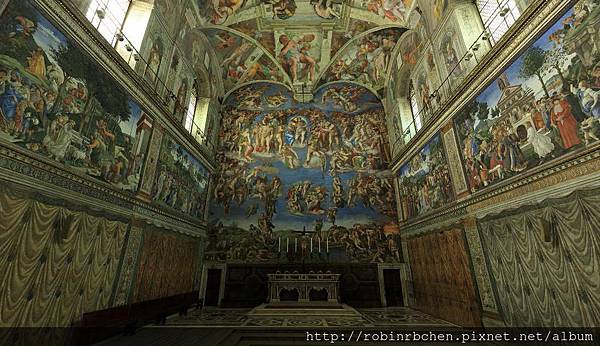 藉由這個網站,可以隨時在家裡慢慢欣賞禮拜堂內部的每一幅畫作。至於在現場的當下,建議就別再費力地在擁擠的人群當中穿梭,努力地尋找拍照的角度,更不用偷偷摸摸地拍照。唯一要做的事,就是專注地欣賞藝術大師撼動人心的曠世鉅作,用心感受那偌大的廳堂當中,每一吋的牆面空間,均被精緻的畫作填滿所帶來的視覺震撼!!