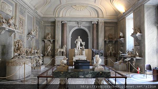 雕塑長廊直接連接到皮歐克禮門提諾博物館,這個中庭名為 Octagonal Court,是皮歐克禮門提諾博物館的一部分,這是一個不可錯過的中庭,很多鎮館之寶,都陳列於這個中庭的四週,像 〈美景宮的阿波羅 The Belvedere Apollo〉、〈海神雕像 River god〉、〈拉奧孔與兒子們 Laocoön〉、〈The Belvedere Hermes〉、〈Perseus Triumphant〉...