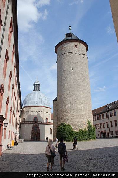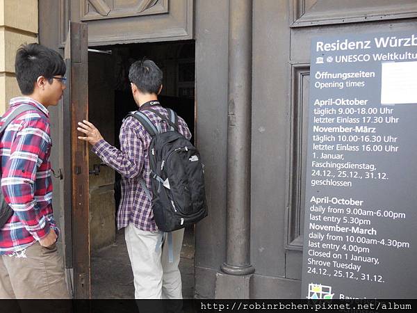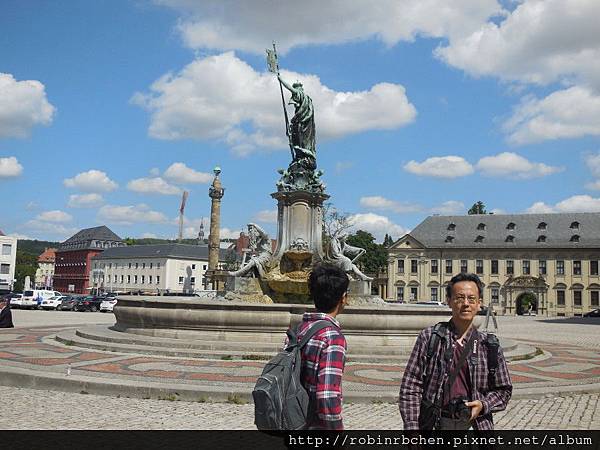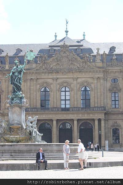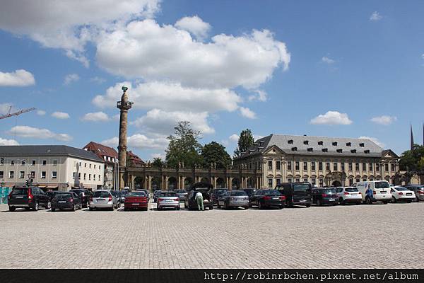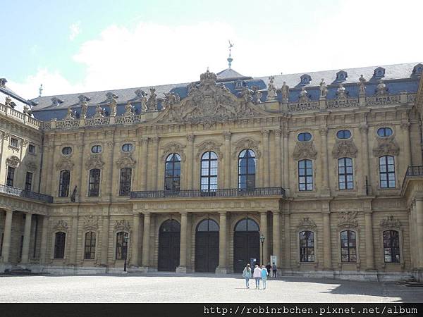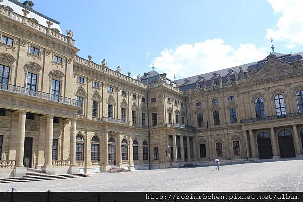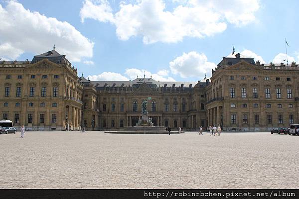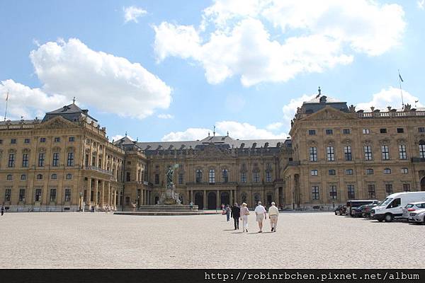 我們先開車前往符茲堡主教宮 (Residenz Wurzburg),其實主教宮與聖基利安教堂的距離並不遠,走路過去頂多也只消十來分鐘的步程,但反正有租車,車子停在教堂旁的停車場與停在主教宮的停車場同樣要繳停車費,開車過去可以節省一些腳力,參觀完主教宮後直接開車上山,又可以節省一些時間。租車旅遊,效率真是非常高!
