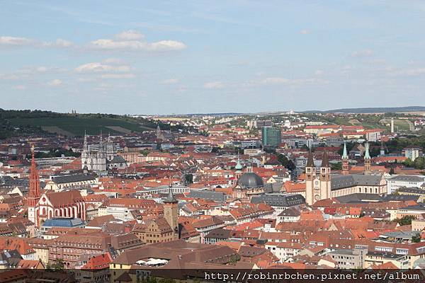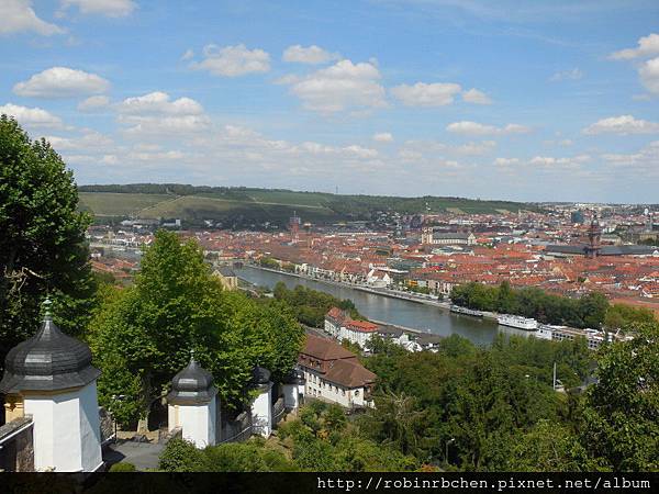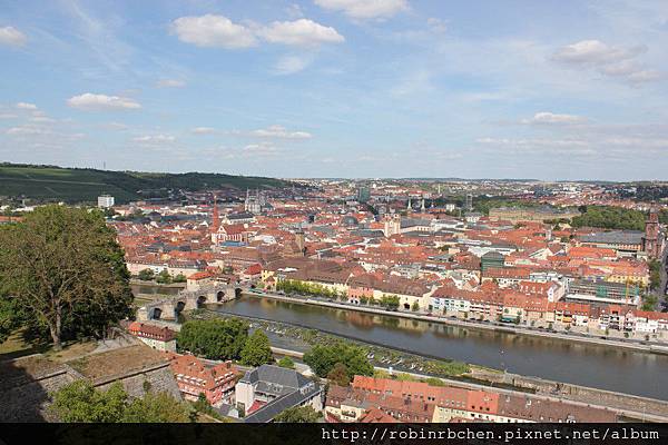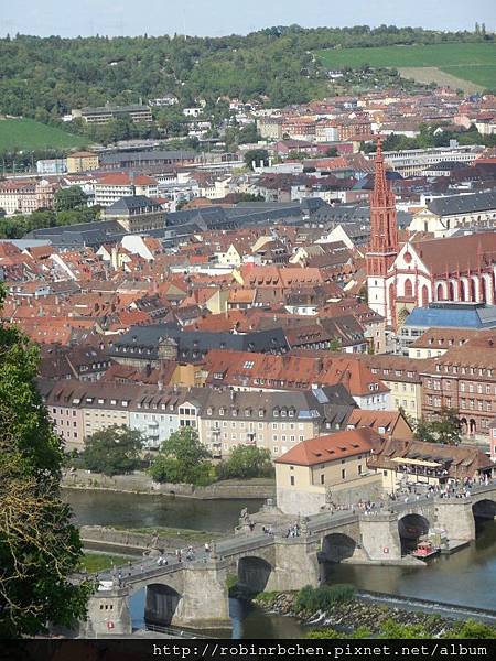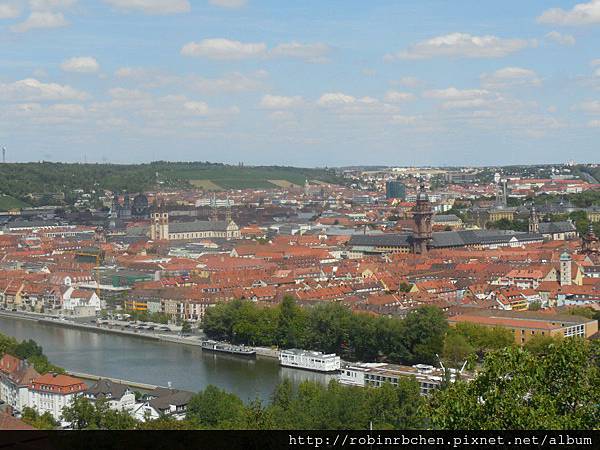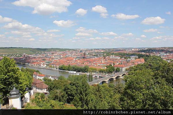 可以看到美因河,與一片紅瓦屋頂的符茲堡老城區。
