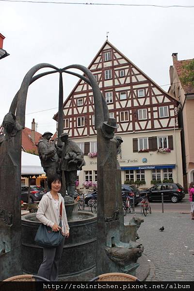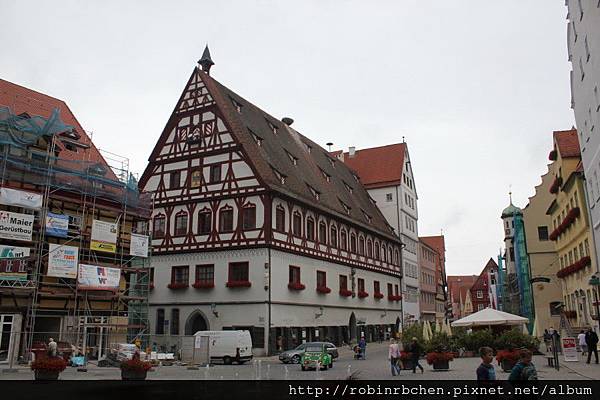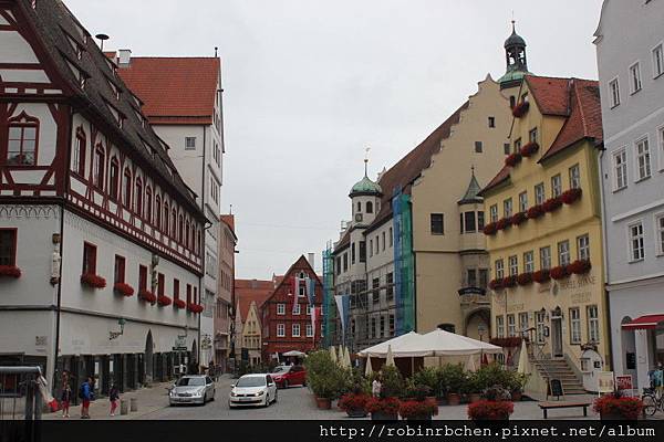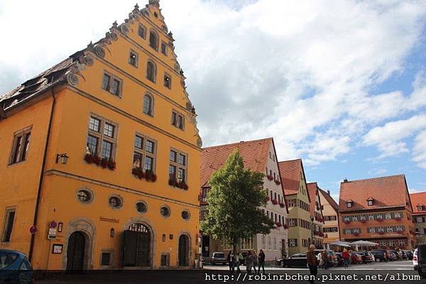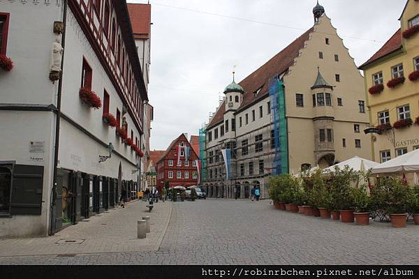 我們從停車場繞到教堂的另一邊,來到諾德林根市中心的市集廣場(Marktplatz)。
