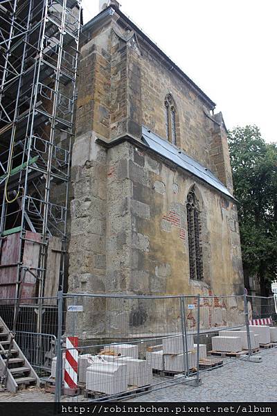 教堂正在整修,周邊大部分被圍籬圍起來。