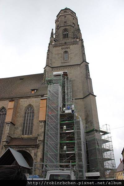 教堂的塔樓高達90公尺,原本可以登頂,但當天塔樓正在整修,沒有開放,因此無緣登上塔頂,鳥瞰這座中世紀城鎮的樣貌 XD