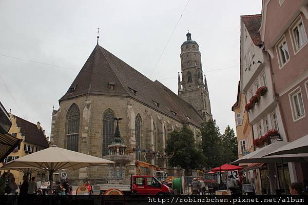 與丁克爾斯比爾一樣,諾德林根的遊客也不算太多,所以我們可以把車開到城中心的聖喬治教堂(St. Georg)附近... 蛤~ 又是聖喬治...為何這些中世紀小鎮都獨鍾聖喬治??
