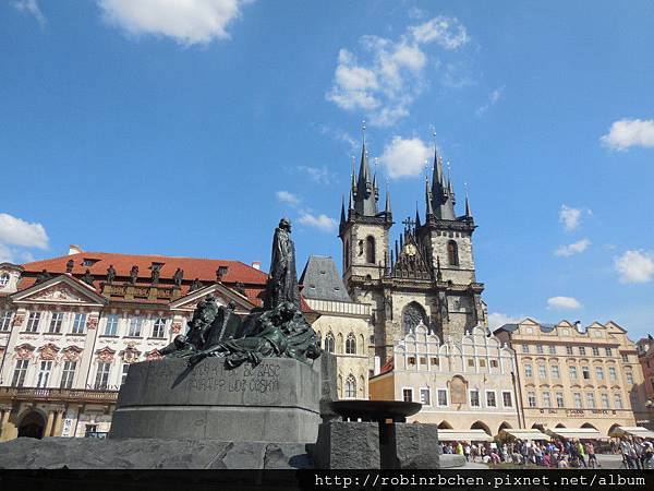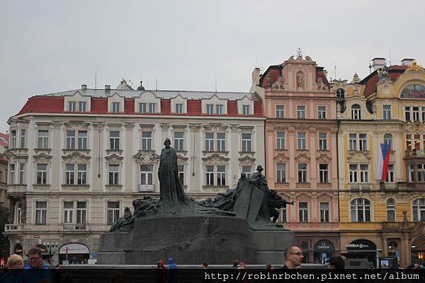 在舊城廣場的中央,有一座紀念15世紀宗教改革家胡斯(Jana Husa)的銅像。