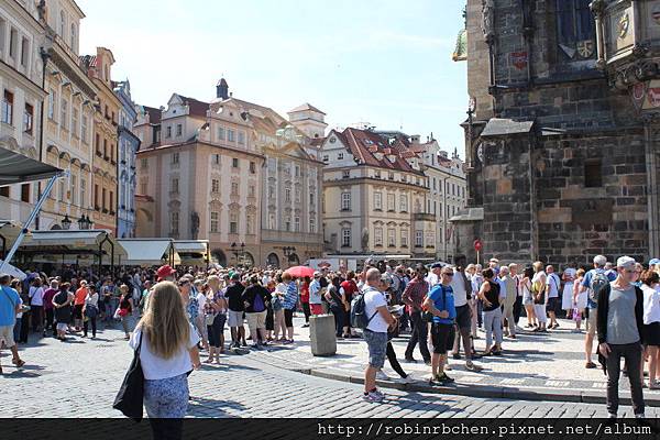 一進入舊城廣場,各地遊客人聲雜沓、街頭藝人樂聲飄揚,廣場雖然遼闊,但依然可以感受到人潮帶來的壓迫感,特別是在舊市政廳的天文鐘前方,更是人潮洶湧、摩肩擦踵。整個廣場塞滿了來自世界各地的觀光客......