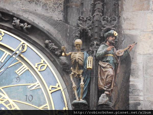 在時鐘的兩旁,有象徵虛榮、貪婪、死亡、慾望的四具人偶,我們去的當天,只看到死亡與慾望兩具人偶,另外兩具不知去向??