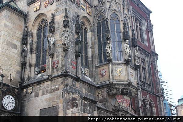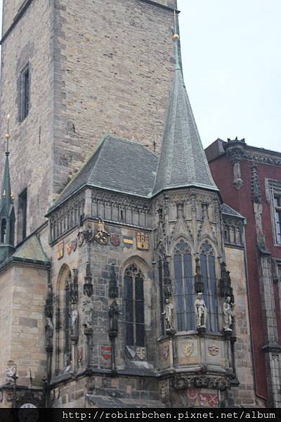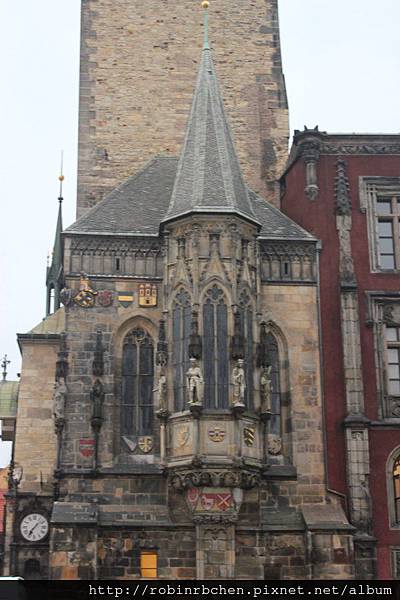 舊市政廳最醒目的部分當然就是這座哥德式的鐘樓,其中掛在鐘樓側牆上的天文鐘,更是所有造訪布拉格的遊客必訪的景點~~