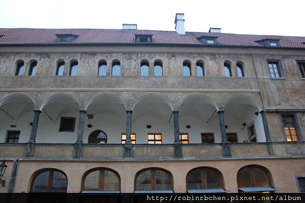 提恩中庭當中另有一棟文藝復興風格的建築,是建於1560年的官諾斯基宮殿(Granovsky palac),當年是修道院附設的客房。最大的特色是二樓的圓拱式迴廊~~