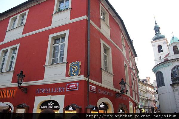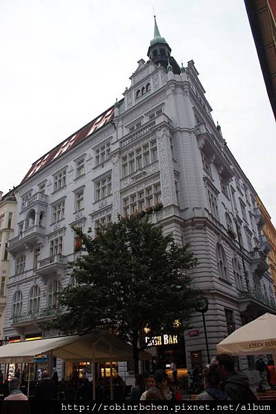 酒吧的對面一樓是水晶店,樓上開了一家五星級旅館,每晚要價超過一萬台幣,在消費低廉的捷克已算是超高房價水準!