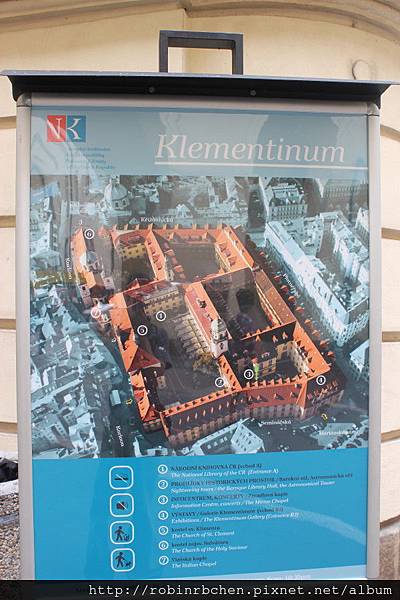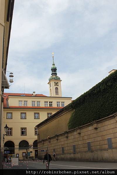 再把焦點轉移到小廣場巴洛克豪宅的對面,可以看到一整片的高牆,這是克萊門特學院(Klementinum)利用校舍所連成的圍牆。