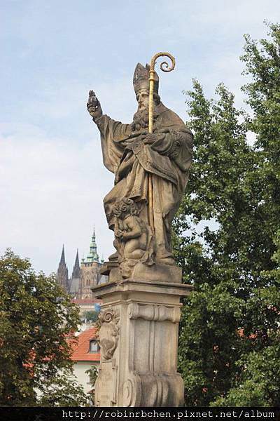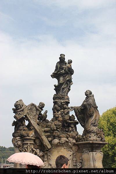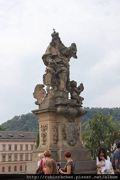 雕像當中,最受矚目的當屬位於橋中央的這尊聖約翰·內波穆克(St. John Nepomuk)。