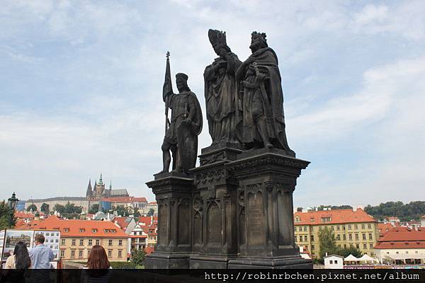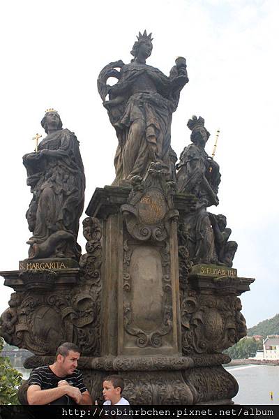 查理大橋兩側每一個橋墩的位置,都設置巨大的聖徒雕像。