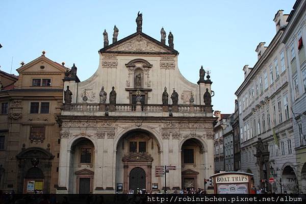 聖薩瓦特教堂的大門位於查理街與Krizovnicka 的交會點,正對著查理大橋的舊城橋塔。這座教堂是整個克萊門特學院建築群當中,唯一開口向外的建築,究其原因,當然不是外來權貴忽然產生了開放的性格,而是為了讓外來的宗教能夠迅速向外擴散 XD。