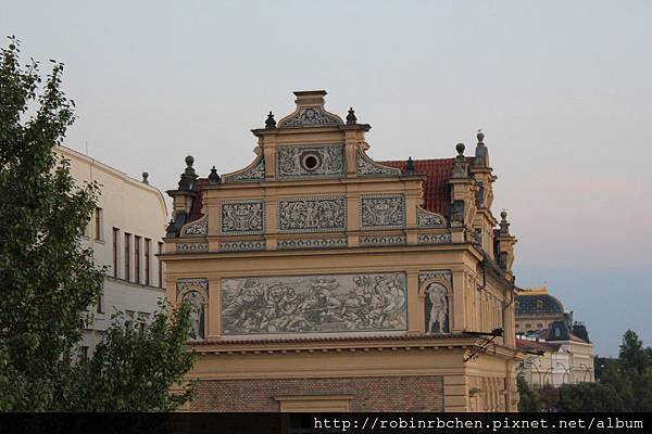 史麥塔納博物館山牆上的繪畫,並非一開始就存在,而是後來由兩位知名畫家Mikolas Ales 與Frantisek Zenisek 所繪製。