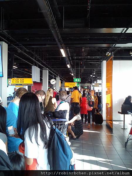 這是我們受困阿姆斯特丹機場時,等待候補機位的隊伍,長長的人龍一路延伸到盡頭之後,又再轉了幾個彎...最慘的是...隊伍幾乎不會動......