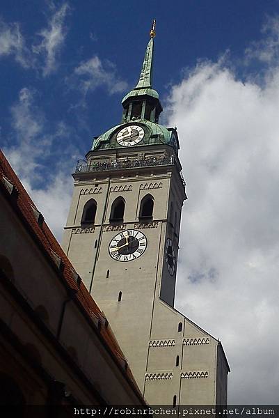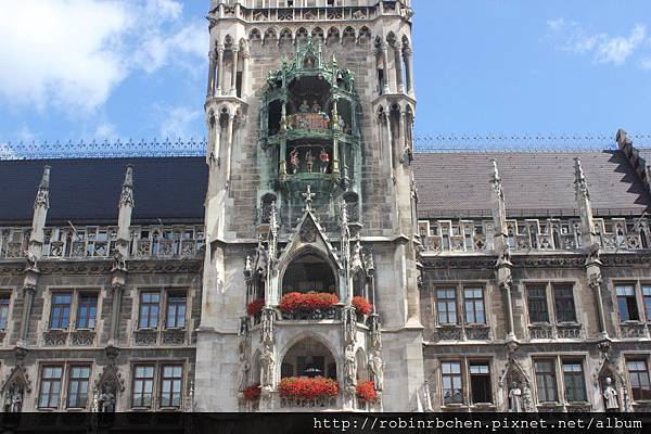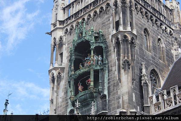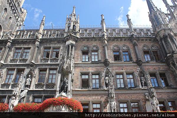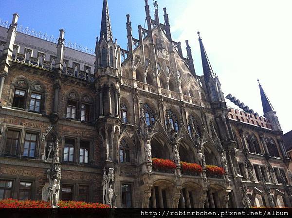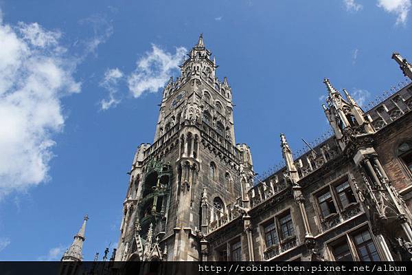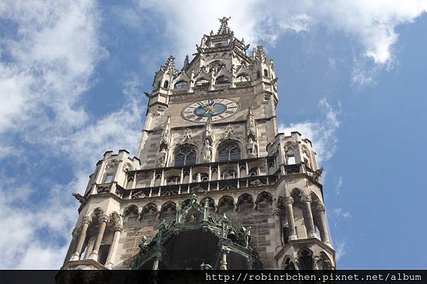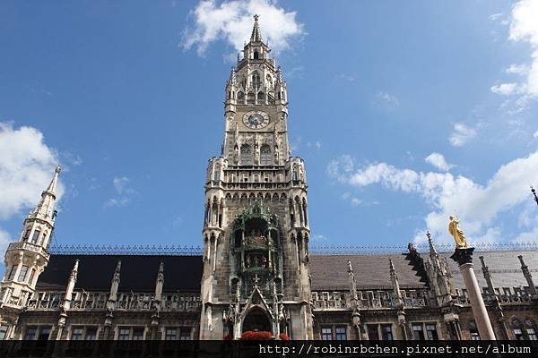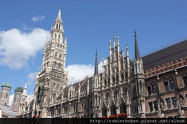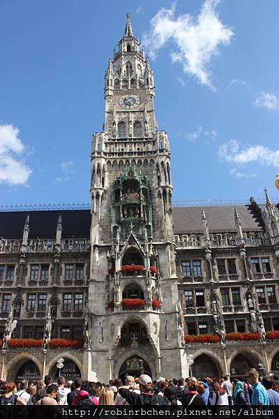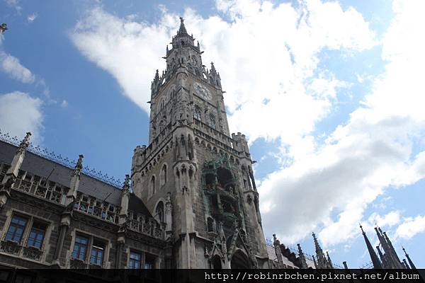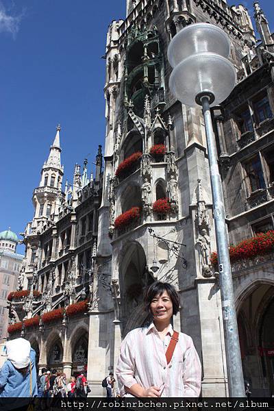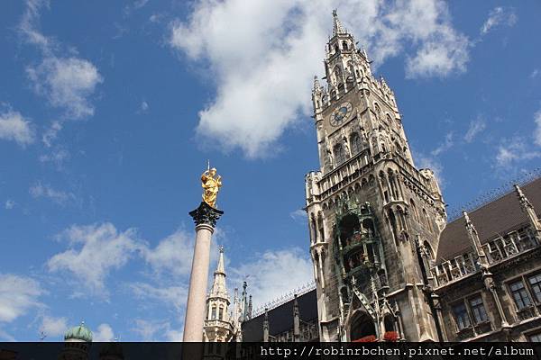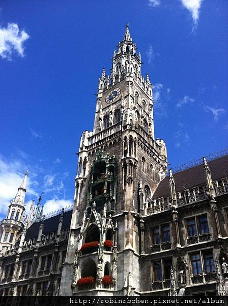 瑪麗恩廣場旁的新市政廳(Neues Rathaus)尖塔,襯著蔚藍的天空,前一天受困荷蘭機場、在狂風驟雨中初抵德國的陰霾,一掃而空!