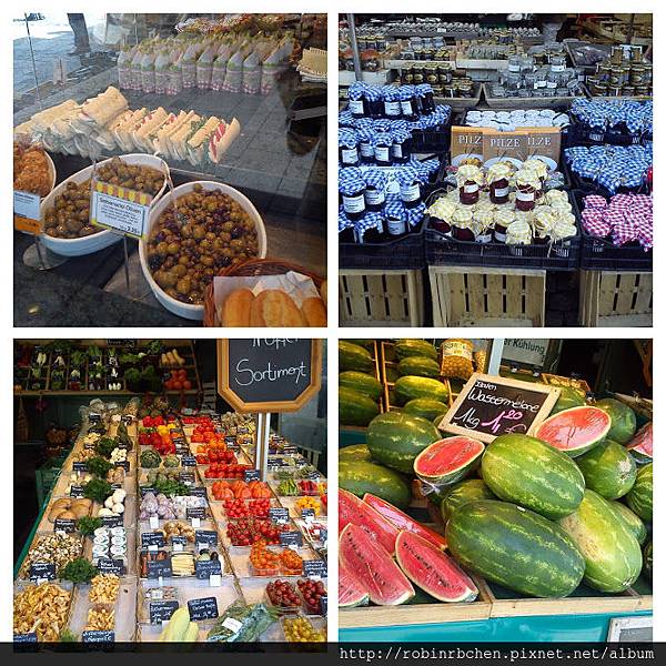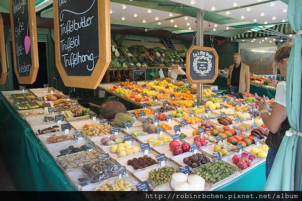 食品市集佔地相當廣闊,有來自世界各地的農產品、魚類、起司、水果,及各種肉類、香腸,還有傳統的德南食物與各式花材、紀念品......
