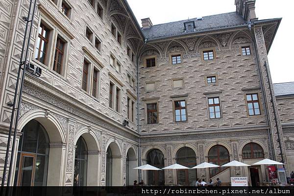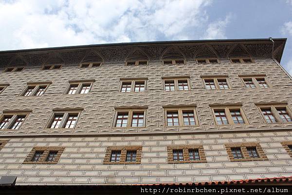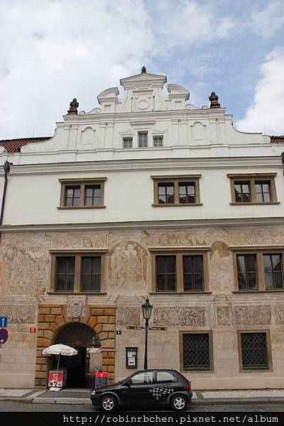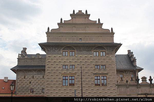 在廣場尾端的角落,坐落著另一座較不起眼的宮殿,這是馬丁尼茲宮(Martinicky palac),波西米亞風格的巨大山牆,是主要的特色之一~~