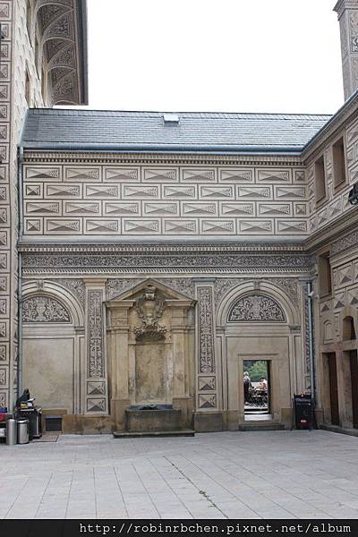 進入城堡的第二中庭,中央的噴泉水池名為Kohlova kasna。