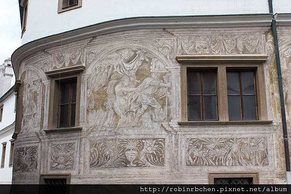 宮殿的正面裝飾著精緻的文藝復興式刮畫,繪製了神話故事與花草鳥獸......