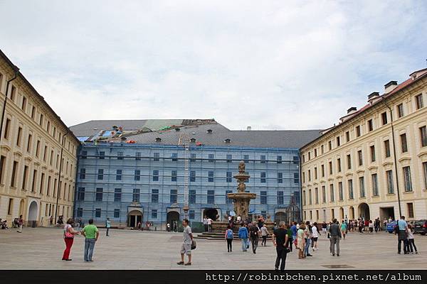 走回布拉格城堡的正門入口前方,入口門面正在整修,建於1614年、布拉格最早的巴洛克式建築 – 馬提亞城門,完全被鷹架所覆蓋 XD