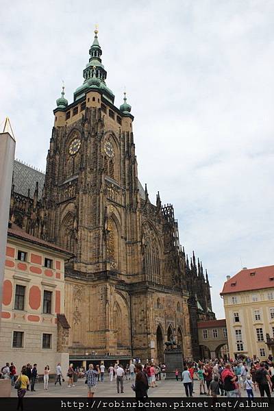最後來到第三中庭最重要、最雄偉的建築,也是不管從布拉格的任何一個角落,都可看到的地標建築 – 聖維塔大教堂(Katedrala sv Vita)。