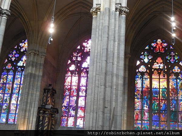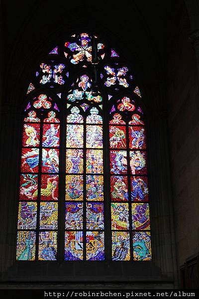 這些玻璃花窗的年代並不算太久遠,大概都是在20世紀所繪製,其中包括布拉格著名畫家慕夏的作品。