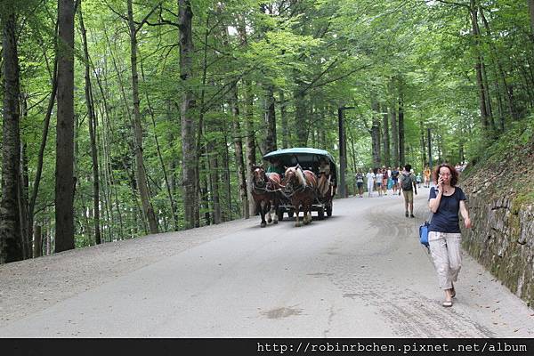 這是往返新天鵝堡的馬車,上山要價6歐,下山3歐。
