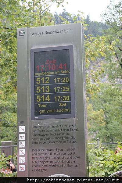 新天鵝堡附近到處都貼心地設置了這樣的導覽梯次電子看板,提醒你現在進行到哪一個梯次,與後續兩個梯次的時間。