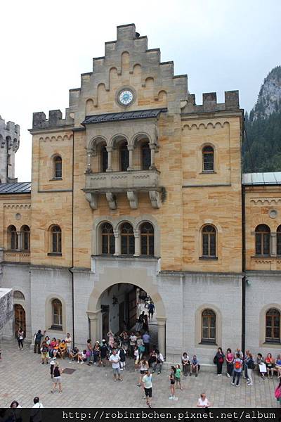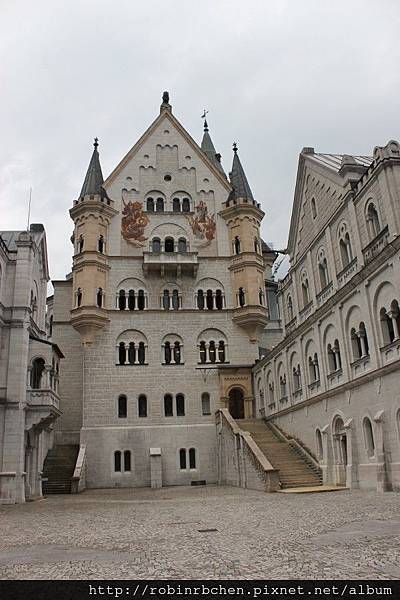 進入城堡中庭,高聳的城堡、尖塔與騎士壁畫,再次展現夢幻國王城堡的「夢幻」形象~~